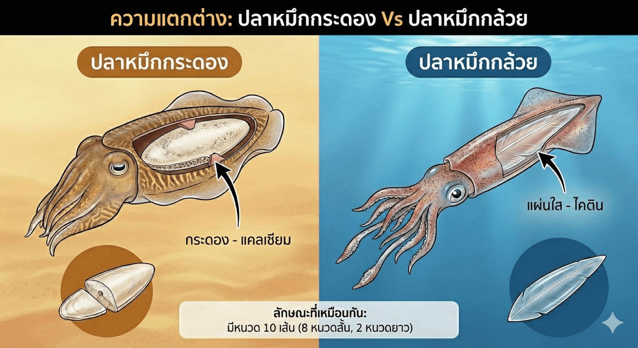 ความต่าง “ปลาหมึกกระดอง” vs “ปลาหมึกกล้วย” ดูยังไง?