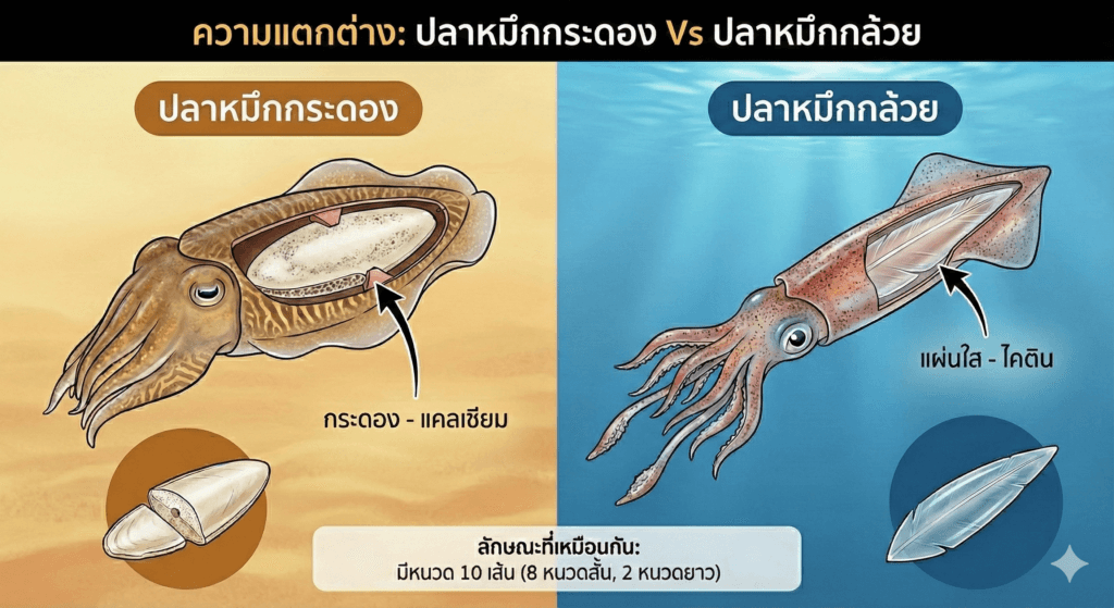 ความต่าง “ปลาหมึกกระดอง” vs “ปลาหมึกกล้วย” ดูยังไง?